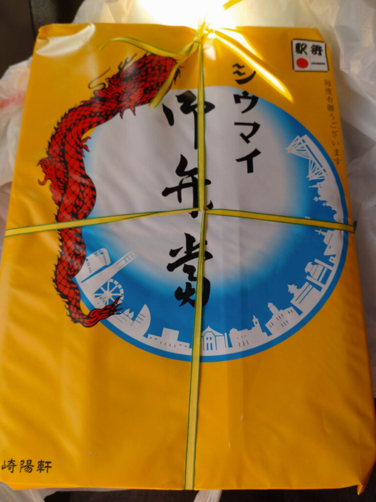乗り換えの間にシウマイ弁当を無事にゲットできました。羽田空港へは横浜の工場で作ったお弁当が納入されているのですね。紐で判別できます。